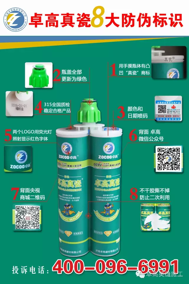 凡是卓高柔性真瓷王(雙管)產(chǎn)品產(chǎn)品包裝蓋不是綠色或者瓶體上沒有真瓷防偽商標(biāo)再或者瓶體上沒有貼《中國質(zhì)量檢驗(yàn)協(xié)會(huì)》認(rèn)定的 全國質(zhì)量穩(wěn)定合格產(chǎn)品 防偽標(biāo)貼,都屬于假冒偽劣產(chǎn)品,對(duì)于那些不法商販公司將追究法律責(zé)任。也提醒廣大消費(fèi)者注意辨別產(chǎn)品真?zhèn)尾⑴e報(bào)假冒產(chǎn)品。